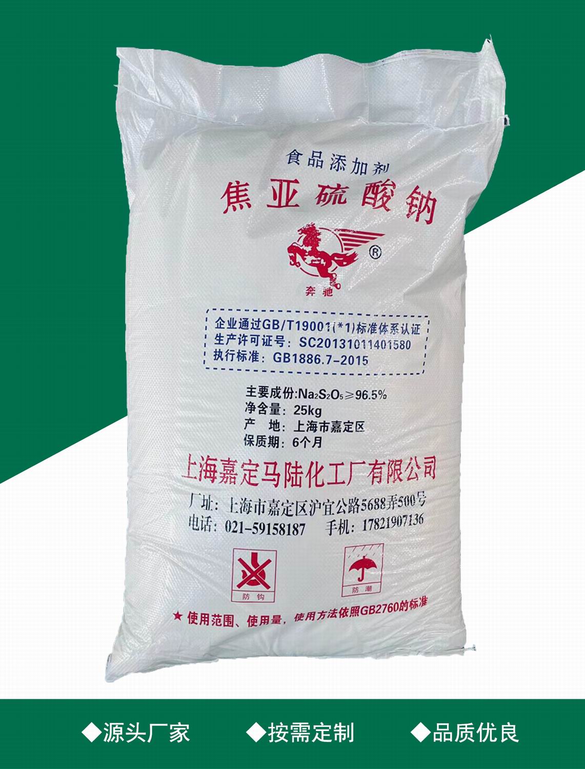 上海嘉定馬陸化工廠有限公司主營生產,焦亞硫酸鈉、亞硫酸氫鈉等產品生產,幾十年的專注焦亞硫酸鈉研發(fā)生產,公司擁有完整、科學的質量管理體系,為確保公司產品能夠長期立足于市場,增強客戶的粘性,可滿足客戶的非標定制需求,可提供產品各個用途的解決方案,公司重信譽、守合同、保質量、快速發(fā)貨以,我們擁有專業(yè)的售前售中、售后團隊共同協作,確保用戶采購中的每個環(huán)節(jié)都能有滿意的體驗度。